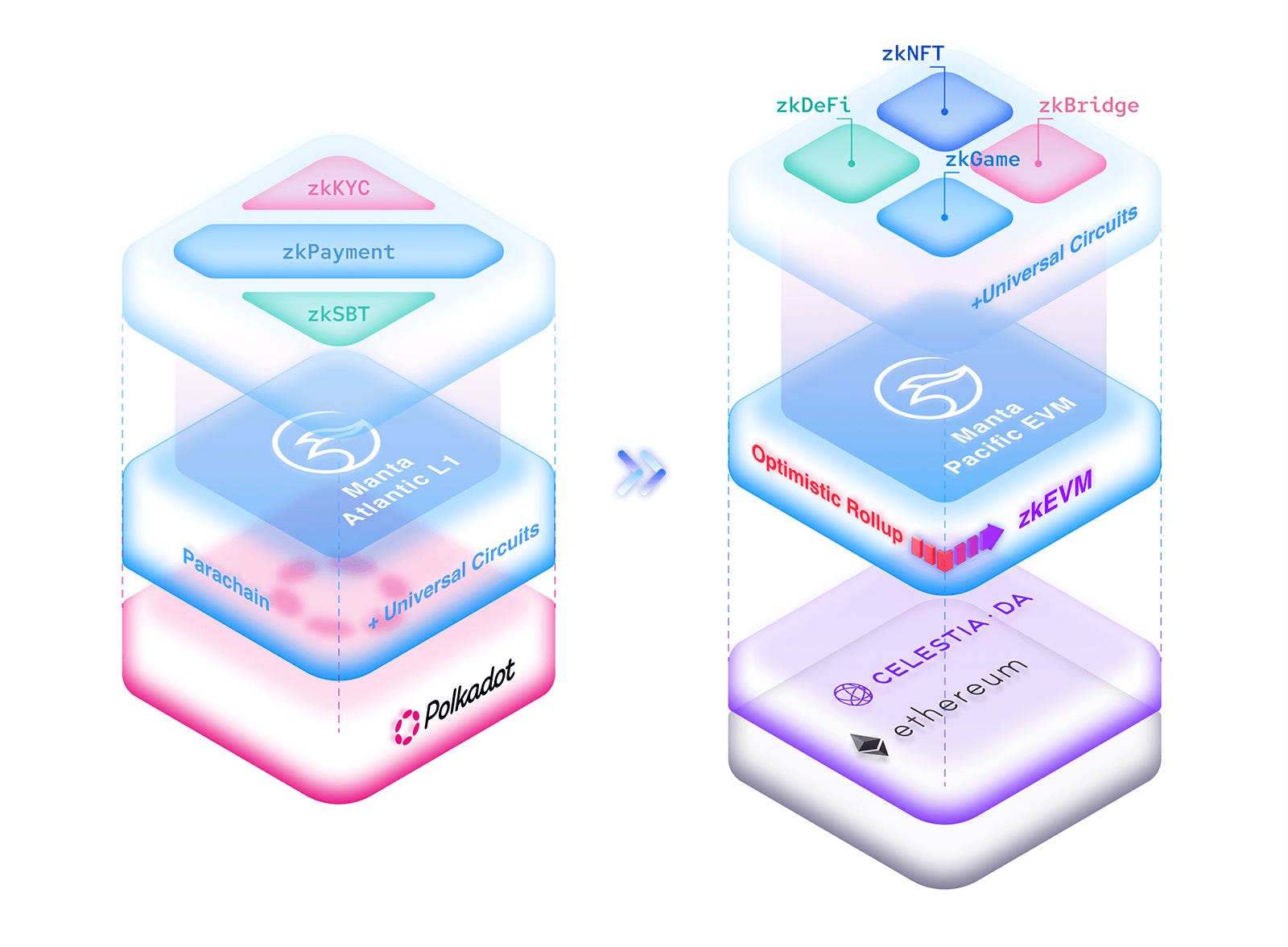 على سبيل المثال؛ مشروع Manta يمتلك طبقة ثانية على الإيثريوم وهي Manta Pacific، وفي نفس الوقت يمتلك بلوكتشين طبقة أولى Manta Atlantic، وهذه الطبقة الأولى تُدفع رسوم المعاملات عليها باستخدام عملة المشروع MANTA.