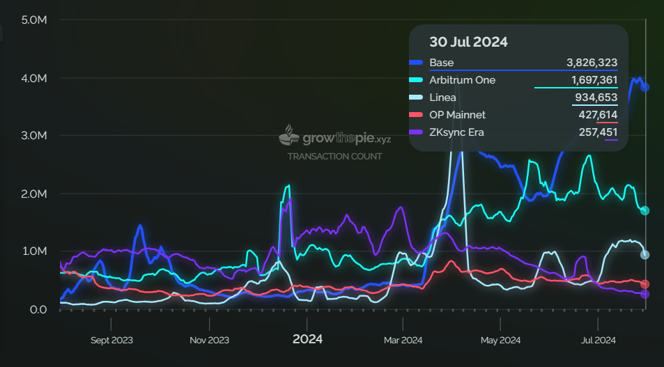 أبرز مثال على كلامي هي شبكة Base، وهي طبقة ثانية على الإيثريوم من تطوير منصة Coinbase، وهي حاليًا واحدة من أكثر الطبقات الثانية استخدامًا على الإيثريوم، وأكثرهم ربحًا من الرسوم التي تحصل عليها، ومع ذلك فالشبكة لا تمتلك أي عملة.