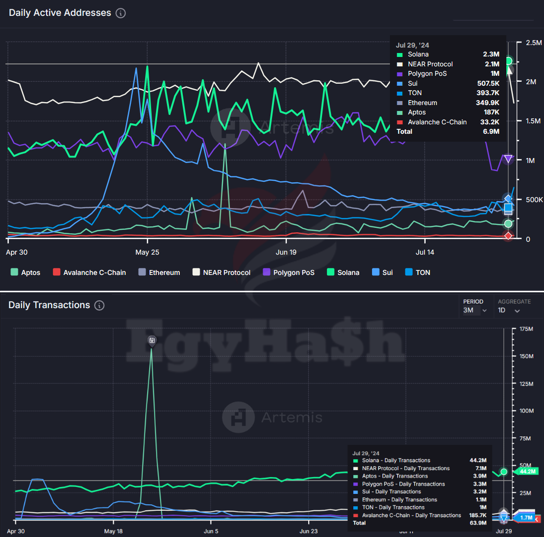 شبكة Solana، وكنتيجة للنشاط المرتفع على الشبكة، وبالرغم من رسوم المعاملات المنخفضة نجحت في التفوق على الإيثريوم في حجم العوائد التي تم جمعها.